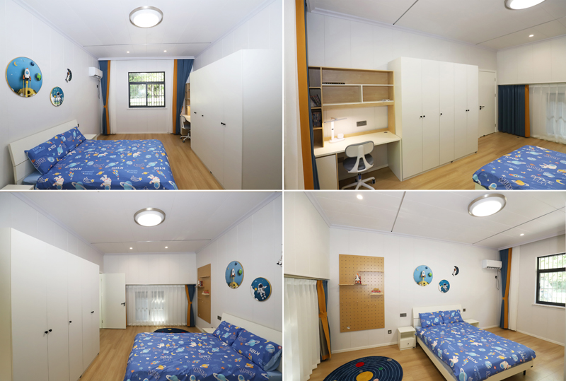 “夢想小屋”改造前大都非常老舊,僅有簡單的家具,采光性也很差。公司設(shè)計人員查勘現(xiàn)場后根據(jù)實際情況用心設(shè)計,施工人員在改造過程中密切配合、分工明確、精心施工,包括對小屋內(nèi)改布線路和頂面、墻面、地面等進(jìn)行施工改造,并配備了床、書桌椅、衣柜、窗簾、燈具、書櫥、空調(diào)等家具家電,使得原本昏暗破舊的房間變得寬敞、明亮、整潔,打造溫馨舒適的生活、學(xué)習(xí)環(huán)境。
