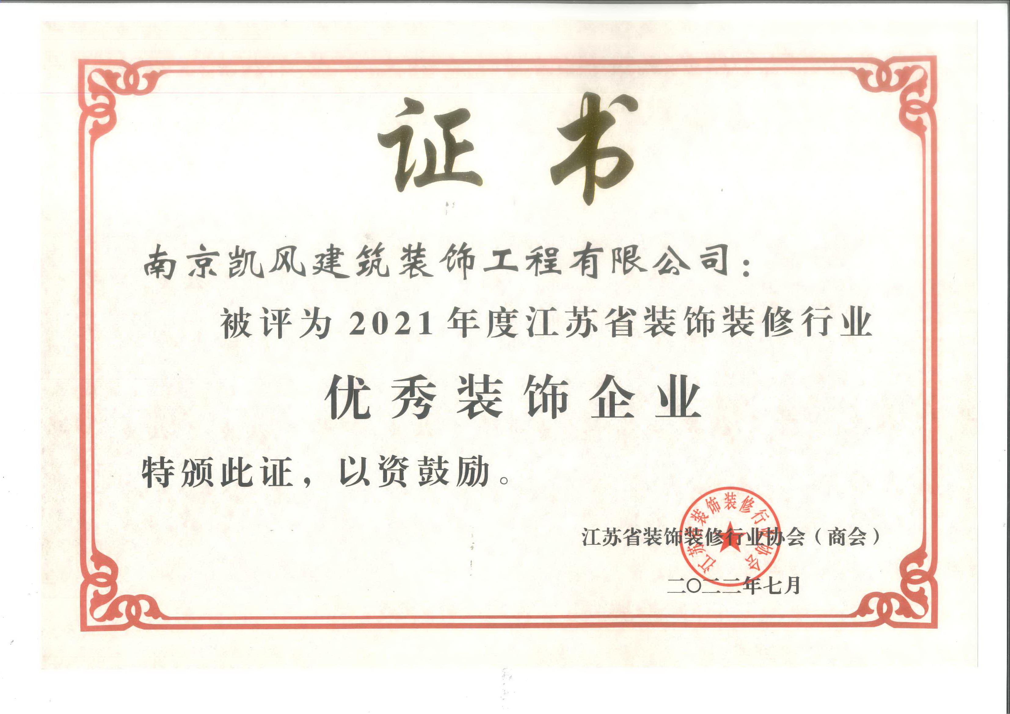 2022年度江蘇省優(yōu)秀裝飾企業(yè)