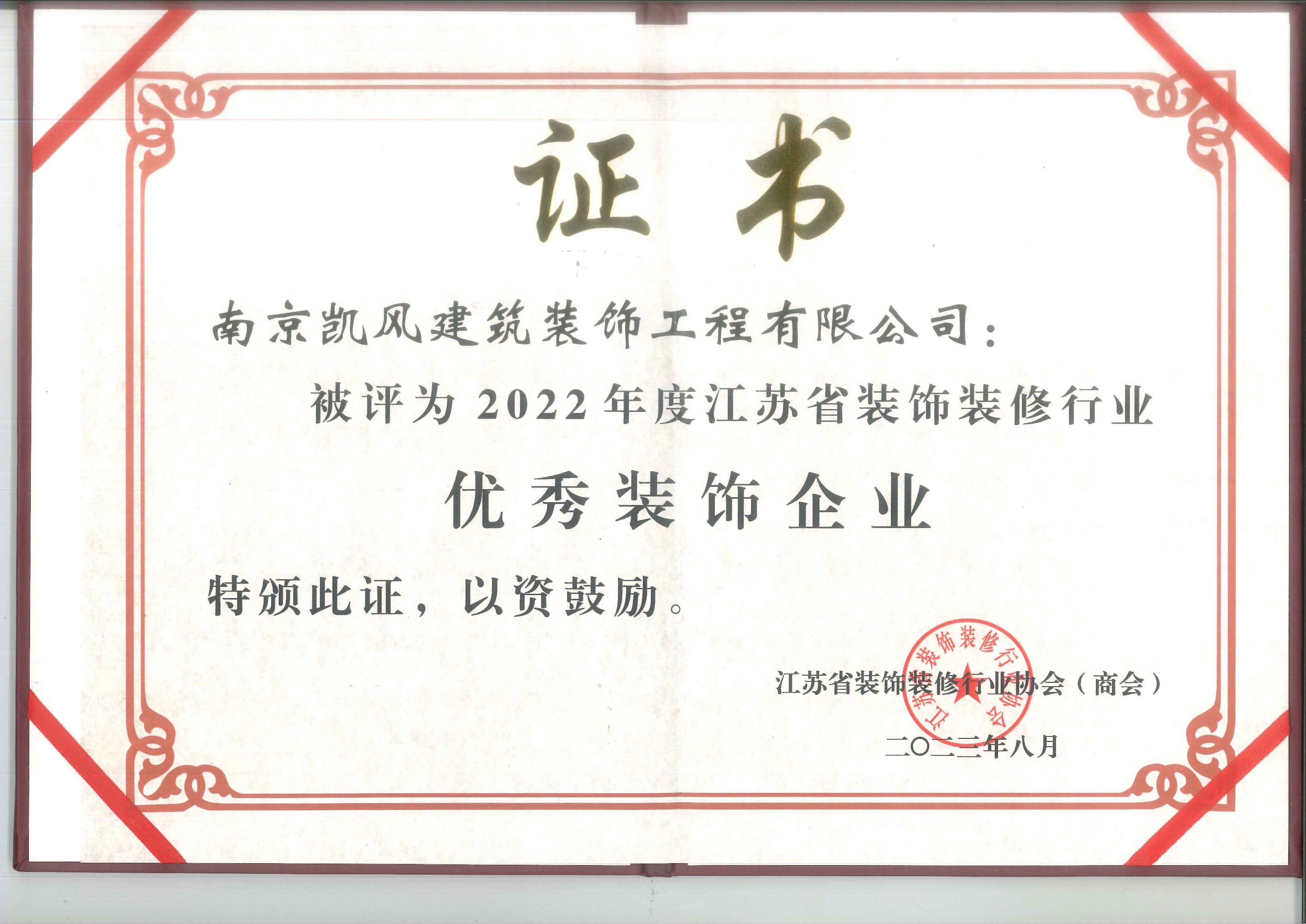 2022年度江蘇省優(yōu)秀裝飾企業(yè)