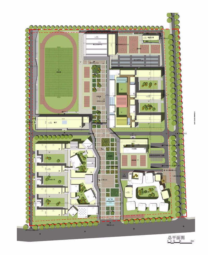 高淳九年一貫制學(xué)校項(xiàng)目,地塊位于高淳區(qū)新區(qū),東側(cè)為職業(yè)中學(xué),西側(cè)為湖濱中學(xué),北側(cè)雙湖路,南側(cè)為規(guī)劃道路?;乜傆玫孛娣e約79128平方米。用地性質(zhì)為學(xué)校及幼兒園。本設(shè)計(jì)理念源自于創(chuàng)造一個(gè)鼓勵(lì)主動(dòng)和協(xié)作學(xué)習(xí)的新模式,主要提倡一個(gè)比以往更人性化、更包容及靈活的環(huán)境。設(shè)計(jì)也將以高標(biāo)準(zhǔn)考慮,作為一個(gè)可以引導(dǎo)其地區(qū)學(xué)校的一個(gè)模范學(xué)校。